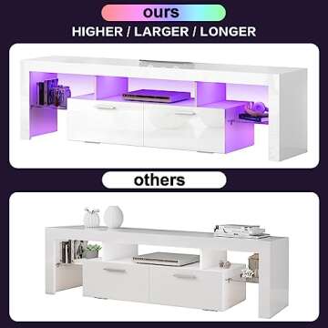 When evaluating similar products, the Clikuutory TV stand distinguishes itself with its unique blend of style, storage and innovative LED lighting. Many competitors may offer basic models without LED features, or lack the high gloss finish that gives this stand its modern appeal. Unlike others that may have limited weight capacities, this stand supports an impressive 220 pounds, making it perfect for larger TVs without fear of compromise. The combination of durable materials, stylish design, and practical functionality truly sets it apart in a crowded market, ensuring you’ll get an excellent return on your investment.