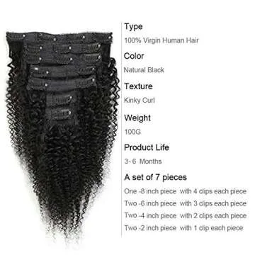 Clip in Human Hair Extensions Curly 9A Virgin Remy Human Hair 3C 4A Curly 100% Human Hair Extensions 7 Pcs 100G For Women Natural Black Color Short Hair Soft and Thick 14inch