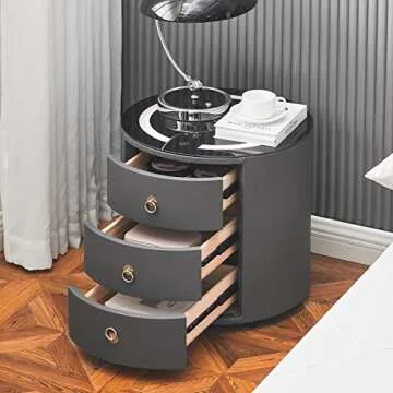 CLIPOP Set of 2 Modern Nightstand with 3 Drawers, Smart Nightstands with Wireless Charging Station, Adjustable Led Light, Faux Leather Surface Bedside Table No Assembly, Dark Grey