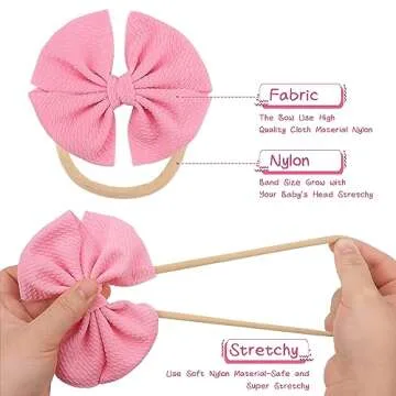 Show more Discover the ultimate accessory for your little one with our beautifully crafted nylon baby headband set! This charming collection includes an incredible 30 different colors, ensuring you can find the perfect headband to complement any outfit. Each hair bow is meticulously hand-sewn and securely tied in a smoke-free environment, making it a safe choice for your precious child.