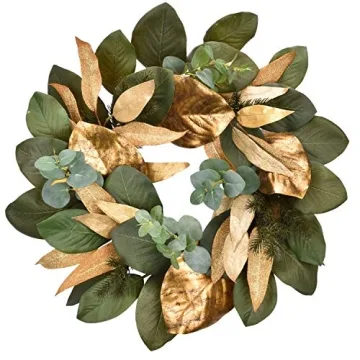 Show moreExperience the magic of the holiday season with the Beautiful Cloris Art Christmas Wreath, an exquisite masterpiece designed to bring warmth and joy into your home. Crafted by a renowned brand known for its commitment to quality, this stunning 22-inch wreath is made from beautiful eucalyptus and magnolia leaves in vibrant green and gold tones. Whether hung on your front door or above your fireplace mantle, its stunning design sets the perfect tone for festive gatherings, inviting delightful smiles from family and friends as they are greeted by an adorably adorned entrance.