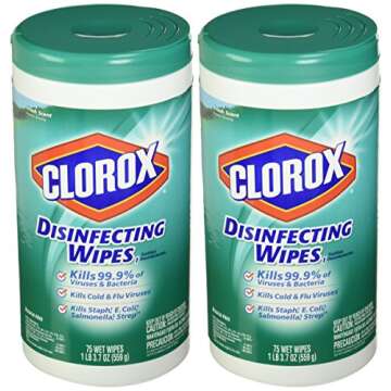Show moreIntroducing the Clorox Disinfecting Wipes, a must-have cleaning solution designed to tackle germs effectively while being bleach-free! These premoistened wipes are perfect for those who prioritize cleanliness and safety, delivering both cleaning and disinfecting in one easy step. With the ability to eliminate 99.9% of bacteria, including harmful pathogens like staph and salmonella, these wipes are ideal for use in day care centers, offices, schools, and restaurants. Each canister contains 75 durable and effective wipes, ensuring you have enough to keep your environment safe and sanitary.