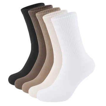 Show moreStep up your sock game with the Closemate Women’s Crew Socks! These delightful socks are an essential addition to any wardrobe, expertly crafted from 85% premium combed cotton for unmatched softness and comfort. The incorporation of 12% polyester and 3% spandex ensures a snug yet flexible fit, catering to diverse foot shapes and sizes. Available in US sizes S (5-8) and M (8-11), these socks promise a cozy experience, no matter your foot size. The gorgeous assortment features five pairs, including a classic black, white, beige, khaki, and dark coffee color, making them versatile enough for various outfits and occasions.
