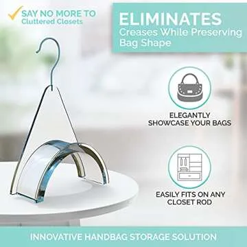 CLOSETLY Handbag Hangers, New Luxury Acrylic Purse and Bag Holder Hook, Closet Storage and Organization Display (Pack of 1)