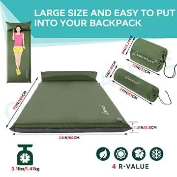 With excellent insulation properties, this sleeping pad features a durable waterproof fabric, paired with 1.5 inches of high-quality memory foam. Designed to conquer the chilly nights outdoors, it provides firm support while boasting an impressive R-value of 4, making it ideal for colder camping conditions. Rest assured, this sleeping pad will ensure you’re cozy and warm, no matter where the night takes you.