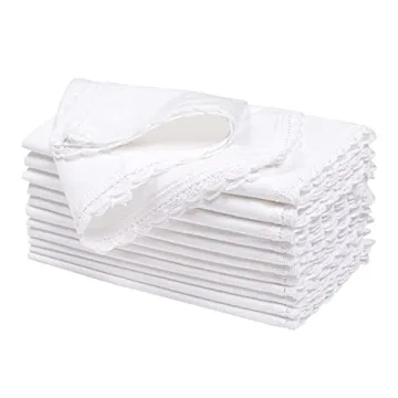 Elegant Cloth Dinner Napkins with Lace, 100% Cotton - Set of 12 for Weddings & More