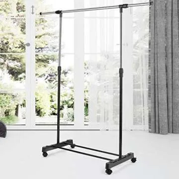 Crafted with a durable design, this product offers adjustable height settings to cater to various clothes lengths. However, it’s important to note that weight capacity is limited, as users have reported issues when exceeding a light load. The structure is primarily constructed from plastic components, designed for compact living or temporary use rather than heavy-duty tasks.