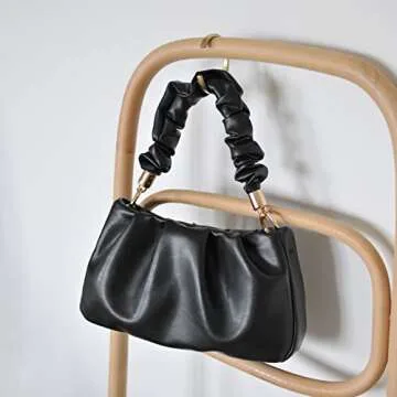 Cloud Pouch Bag Women Shoulder Handbag Soft Vegan Leather Vintage Hobo Chain Cross body Bag (Black)