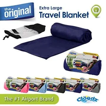 Cloudz Extra Large Airplane Travel Blanket for Your Flight, Car, Camping, Home or Comfort Anywhere! Includes Warm Cozy Pockets for Your Feet and a Travel Bag - Navy Blue