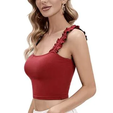 CLOZOZ Crop Tops for Women Ruffle Cropped Tank Tops Cute Summer Ribbed Square Neck Trendy Going Out Preppy Strappy Top Red