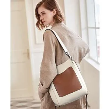 CLUCI Hobo Bags for Women Soft Leather Bucket Tote Purse and Handbag Designer Ladies Crossbody Shoulder Bags Off-white with Brown