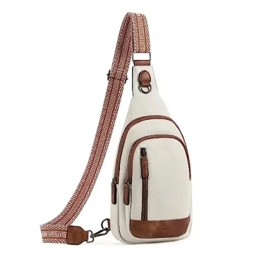 CLUCI Leather Trendy Large Sling Backpack for Women - Beige/Brown