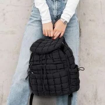 CLUCI Puffy Quilted Backpack for Women, Lightweight Backpack for Gymming and Traverling (Black)