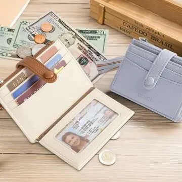 CLUCI Small Womens Wallet RFID Blocking Credit Card Holder with ID Window Leather Slim Card Wallets for Women Light Blue