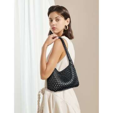 CLUCI Woven Shoulder Bag for Women Vegan Leather Purse Hobo Handbag 2PS
