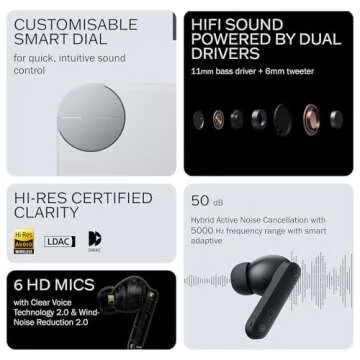 CMF Buds Pro 2 Wireless Earbuds, Hi-Res Audio with LDAC, 50 dB Hybrid Noise Cancelling Earbuds, Ultra Bass Technology, Bluetooth 5.3, 43H Play Time with Charging Case, 6 HD Mics Headphones, Light Grey