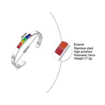 cmoonry 316L Stainless Steel Rainbow Bangles for Women Men LGBT Gay Pride Bracelet Promise Jewelry (60)