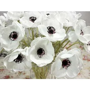 CN-Culture 10Pcs Artifical Real Touch PU Anemone Flower Bouquet Room Home Decor (White)