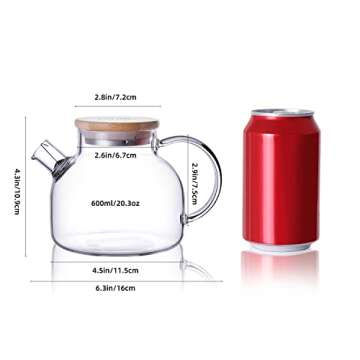 CnGlass Glass Teapot Stovetop Safe,20.3 oz Clear Tea pot with Removable Filter Spout,Loose Leaf and Blooming Tea Maker