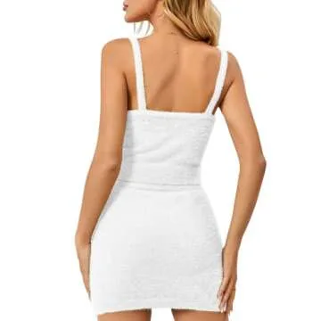Cnkwei Women's 2-Piece Fuzzy Pajamas Set Cozy Knit Set Sleeveless Crop Top Mini Skirt Loungewear Set Outfit White