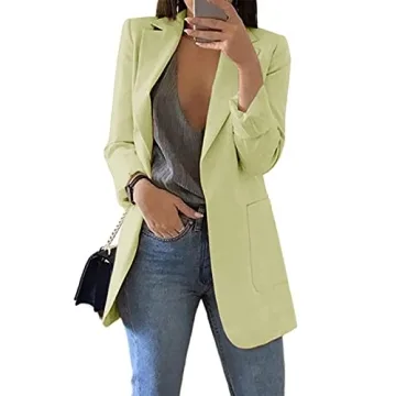 Cnkwei Womens Casual Blazers Open Front Long Sleeve Lapel Collar Work Office Jacket Green