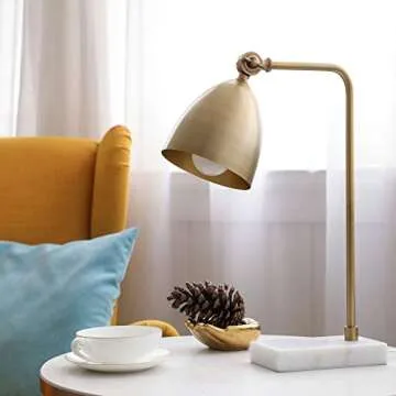 CO-Z Gold Desk Lamp with LED Bulb Adjustable, Antique Brass Metal Table Lamp Marble Base, Mid Century Modern Reading Lamp Office, 18’’ Industrial Work Lamp for Reading Bedroom Living Room Office.