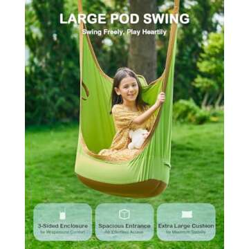 CO-Z Upgraded Kids Hanging Pod Swing Chair with Inflatable Cushion, Child Hanging Hammock for Indoor and Outdoor, Sensory Pod Swing for Kids (Two Straps, Green)