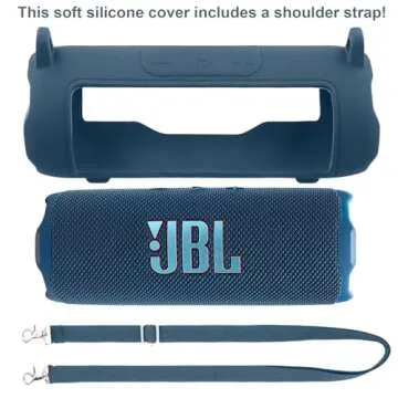 co2CREA Silicone Case for JBL Flip 7 Portable Waterproof Speaker, Portable Travel Soft Cover with Shoulder Strap, Protective Skin Case (Blue)