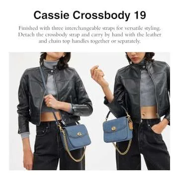 The Cassie 19 is crafted from a blend of luxurious denim and refined leather, providing both style and durability.