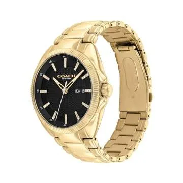 Show more Introducing the Coach Jackson Men's Watch, a perfect blend of sophistication and practicality! This stunning timepiece is designed for those with discerning taste who appreciate both style and functionality. Crafted by the renowned Coach brand, this watch features a striking gold-toned, stainless steel case that not only enhances its aesthetic appeal but also ensures durability for life on the move. The textured black dial adds a modern touch, showcasing a sunray finish that catches the eye with every glance. Whether you’re at work or enjoying leisure time, this watch is your ultimate companion.