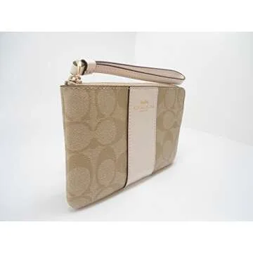 Stylish Coach Signature PVC Leather Corner Zip Wristlet - Light Khaki & Chalk