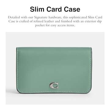 Why You Will Love This Product: The Coach Slim Card Case is not just an accessory; it's a companion that elevates your everyday carry. With its stunning aquamarine color and refined design, it enhances any outfit while providing you with the practicality you need. Whether running errands or attending a formal event, this cardholder will ensure you look polished and put together.