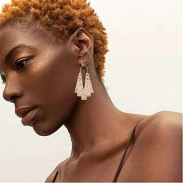 Show moreDiscover a stunning fusion of vintage charm and contemporary design with the Coadipress Vintage Boho Ethnic Dangle Earrings! Crafted with meticulous attention to detail, these earrings feature a hollow-out fan shape and geometric drop design, enriched by an ancient moon totem for a tribal touch. Made for those who appreciate unique accessories, these earrings are polished and hammered for a bespoke finish. With their striking gold tone and copper accents, they are sure to enhance any outfit, making you feel sophisticated and stylish.