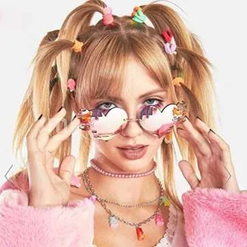COASION Melting Heart Sunglasses for Women Men Trendy Design Rimless Party Cute Prom Glasses Personality Fashion Fire Flame Shades (Grey)