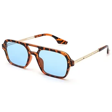 Show more Introducing the COASION Vintage 70s Flat Aviator Sunglasses, your gateway to capturing the essence of retro style infused with modern functionality. These sunglasses feature an iconic square metal design that transports you back to the stylish flair of the 70s, enhanced by a beautiful tortoise frame that seamlessly blends with stunning blue lenses. But style isn’t their only virtue; these shades also provide top-notch UV400 protection, shielding your eyes from 100% of harmful UVA and UVB rays. This way, you can confidently soak up the sun on your next outdoor adventure without compromising your eye health.