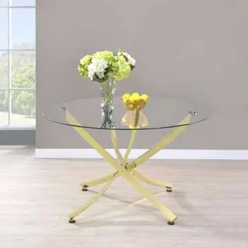 Coaster Home Furnishings Beckham Round Dining Table Brass and Clear