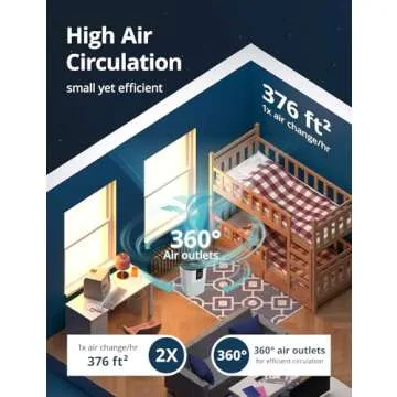 Equipped with Air Spiral Technology and a 360° air outlet, the Cobectal Air Purifier boasts impressive airflow capabilities, covering an area of up to 376 ft² per hour. Whether you're dealing with dust, pet dander, or cooking smells, this purifier offers a quick and efficient solution, making it a must-have for households with children or pets.