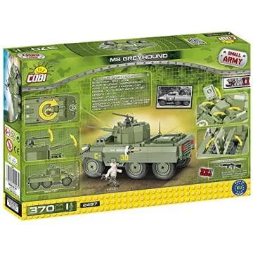 The COBI Small Army M8 Greyhound Tank is the ultimate building experience for military enthusiasts and construction block lovers alike. This impressive model includes a staggering 370 blocks that allow you to recreate the iconic M8 Greyhound Tank in stunning detail. Whether you are adding to your collection or looking for a new DIY project, this kit has everything you need to construct a robust replica. Included in the set is a meticulously designed figure of an artilleryman...