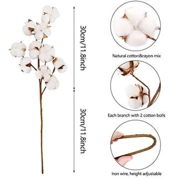 Coceca Cotton Stems - 3 Pack 10 Balls Per Stem - 23 Inch Farmhouse Display Filler-Foral Decoration