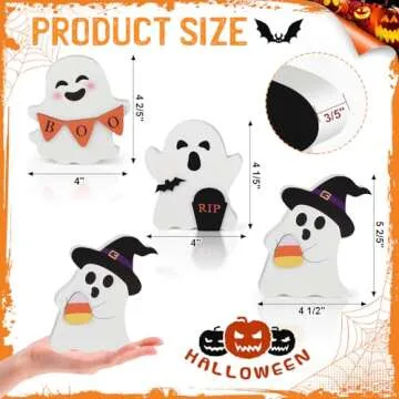 COCHIE Cute Ghost Halloween Decorations Indoor, Wooden Tiered Tray Decor Table Sign Set of 3, Black Cat Bat Witch Broom Signs Pumpkin Blocks for Party Home Shelf Display (B-Ghost)