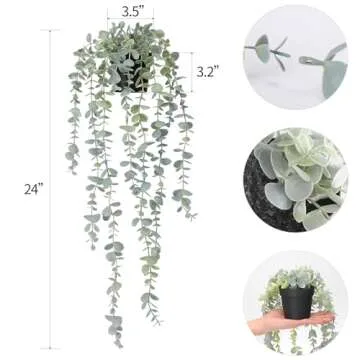 COCOBOO 1pcs Artificial Hanging Plants Fake Eucalyptus Potted Plant Hanging Plant for Wall Room Home Indoor Outdoor Shelf Decoration