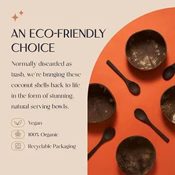 COCOBOWLCO Coconut Bowl & Wooden Spoons Bowl Set 2 - Birthday Gifts for Women - Coconut Bowls for Eco Friendly Kitchen Decor, Acai Bowls & Smoothie Bowls (Polished)