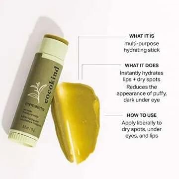 Cocokind Mymatcha All-Over Moisture Stick, Lip Balm and Eye Cream for Dry Skin 0.5 Oz