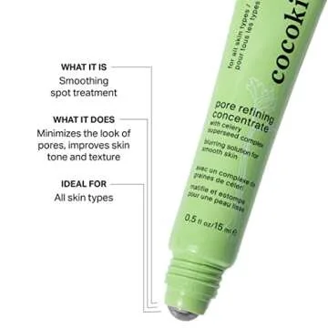 Show moreCocokind Pore Refining Concentrate is your ultimate solution for achieving smooth, refined skin. This revolutionary product harnesses the power of its key ingredients, including the nourishing Celery Superseed Complex and moisturizing Squalene, to deliver outstanding results. Designed to combat the appearance of pores and enhance skin texture, this lightweight concentrate is perfect for use on your T-zone or cheeks, ensuring a stylish and polished look every day. Its gentle formula is suitable for all skin types, making it a must-have staple in your skincare routine.