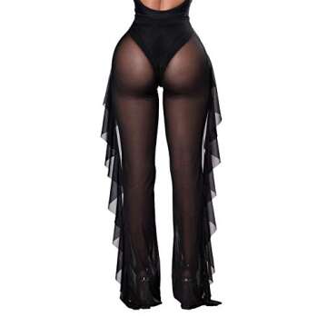 COCOLEGGINGS Women's Plus Size Sheer Mesh Ruffle Swimsuit Cover Up Pants Black 3XL