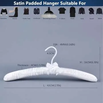 Cocomaya 17 Inch Extra Large Anti Slip Satin Padded Bridal Wedding Dress Hanger No Bumps for Dress Coats, Sweaters Pack of 5 (White, 5)