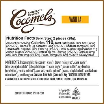 Cocomels Chocolate-Covered Vanilla Coconut Milk Caramel Squares, Organic Vegan Candy, Vanilla (15 Packs of 2)