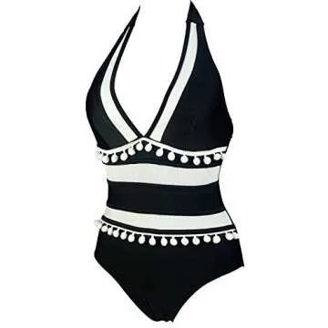 Maintaining this swimsuit is simple and hassle-free; just hand wash in cold water and line dry to keep it looking fresh. A unique aspect of this product is that it comes with a set of replacement pom-poms ensuring your swimsuit stays stylish for a longer duration. Customers rave about how flattering the fit is, highlighting how it accentuates the right areas while offering ample coverage.