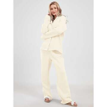 Show moreIntroducing the codcm Womens Pajama Sets, a delightful combination of style and comfort that every woman deserves! Crafted from 100% soft cotton, these pajama sets offer a luxurious touch for your skin while ensuring unrestricted movement. The charming heart print adds a playful vibe, making these PJs not only perfect for sleep but also an appealing loungewear option. Designed to keep you cozy through the night, the long sleeve button-down shirt paired with matching long pants creates a snug fit perfect for all seasons. Available in multiple sizes, these pajamas cater to a range of body types, providing an adorable yet comfortable fit for everyone.