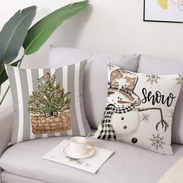 Coeufuedy Christmas Stripe Pillow Covers 18x18 Inch Set of 4 Snowman Reindeer Gloves Eucalyptus Winter Holiday Decorative Farmhouse Cushion Covers for Sofa Couch Living Room